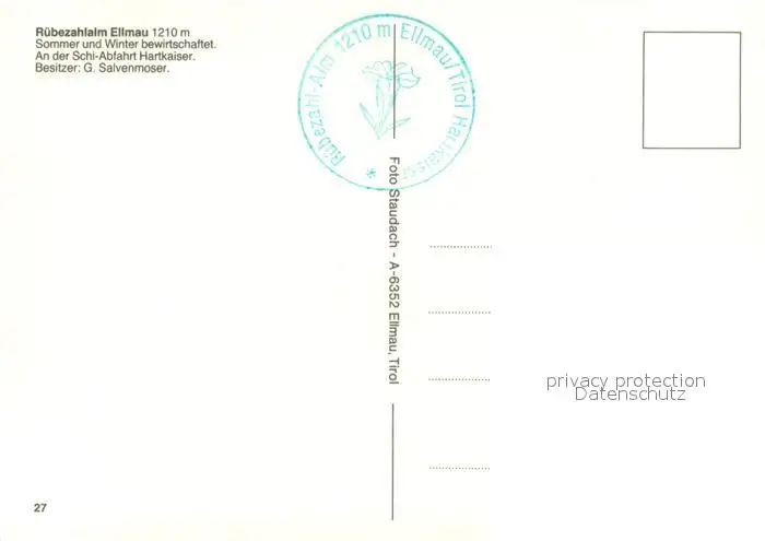 Ellmau_Tirol Ruebezahlalm Ellmau Tirol postalisch nicht gelaufen nach 1965 Erhaltung siehe scans [FriedD77] Frierer