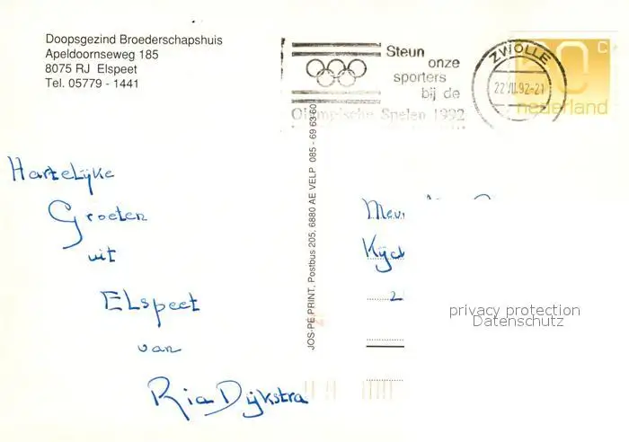 Elspeet Doopsgezind Broederschapshuis Elspeet postalisch gelaufen 1992 Erhaltung siehe scans [WerneD78] WernPID7