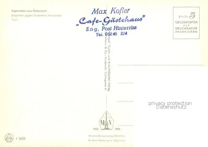 Eng_Hinterriss_Tirol Engalmen gegen Grubenkar Eng_Hinterriss_Tirol postalisch nicht gelaufen nach 1965 Erhaltung siehe scans [LiesaD40] LiesID40