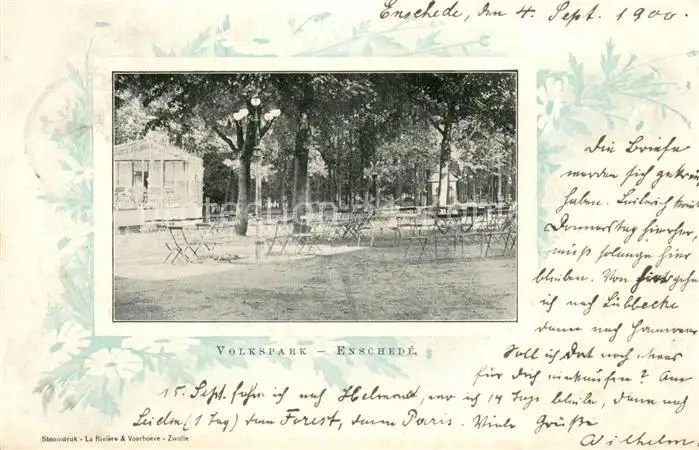 Enschede Volkspark Enschede postalisch gelaufen 1900 Erhaltung siehe scans [FriedD77] Frierer