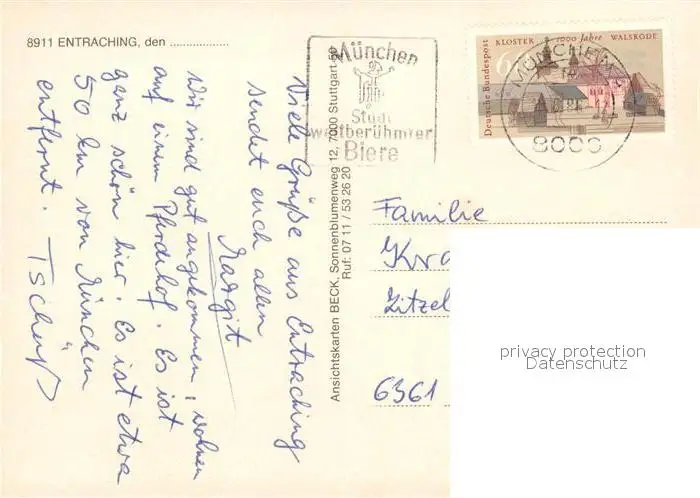 Entraching Oberbayern Kategorie Alte Ansichtskarten Postkarten bx55880 Entraching_Oberbayern Entraching Oberbayern postalisch gelaufen nach 1965 Erhaltung siehe scans [NatalD47]