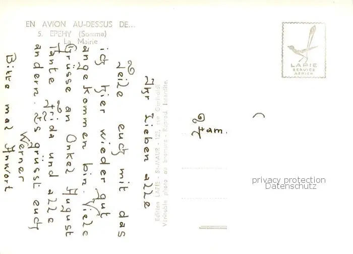 Epehy_80_Somme La Mairie vue aérienne postalisch nicht gelaufen nach 1965 Fliegeraufnahme Erhaltung siehe scans [FriedD77] Fliegeraufnahme Frierer