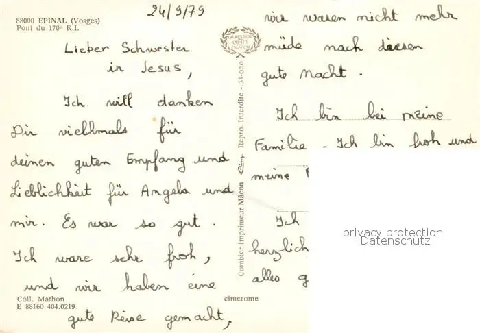 Epinal_88_Vosges Pont du 170e R.I. postalisch nicht gelaufen 1979 Erhaltung siehe scans [FriedD77] Frierer