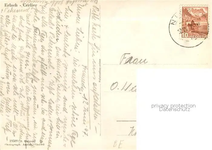 Erlach_Bielersee_BE Panorama mit Kirche postalisch gelaufen 1947 Erhaltung siehe scans [WerneD78] WernPID7
