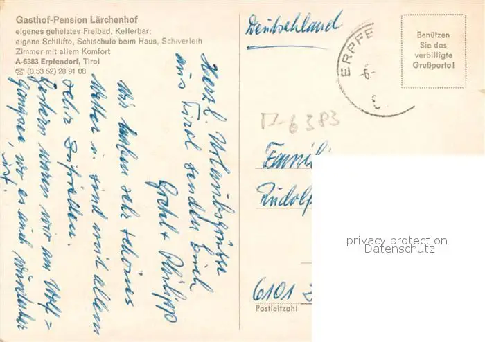 Erpfendorf Gasthof Laerchehof Freibad Erpfendorf postalisch gelaufen nach 1965 Erhaltung siehe scans [LiesaD40] LiesID40