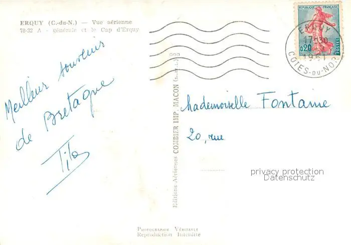 Erquy Vue aérienne Cap d'Erquy Erquy postalisch gelaufen 1951 Erhaltung siehe scans [FriedD77] Frierer