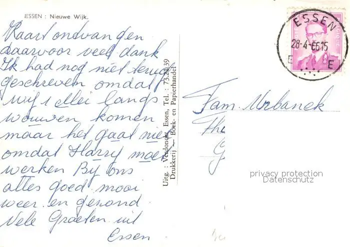Essen Nieuwe Wijk postalisch gelaufen 1966 Erhaltung siehe scans [WerneD78] WernPID7