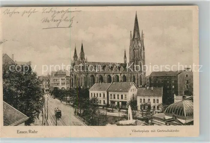 Essen Ruhr Vihoferplatz mit Gertrudiskirche Essen postalisch gelaufen 1915 Erhaltung siehe scans [WerneD78] WernPID7