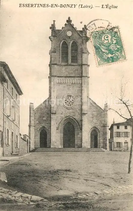 Essertines-en-Donzy Eglise Essertines-en-Donzy postalisch gelaufen 1907 Erhaltung siehe scans [FriedD77] Frierer