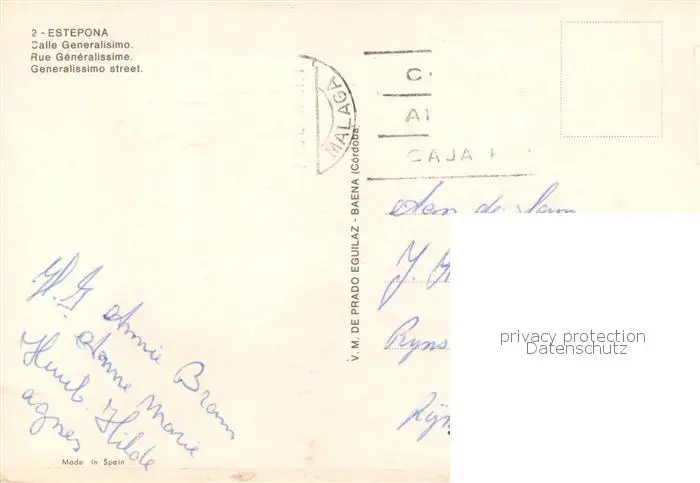 Estepona_Malaga Calle Generalisimo postalisch gelaufen nach 1965 Erhaltung siehe scans [WerneD78] WernPID7