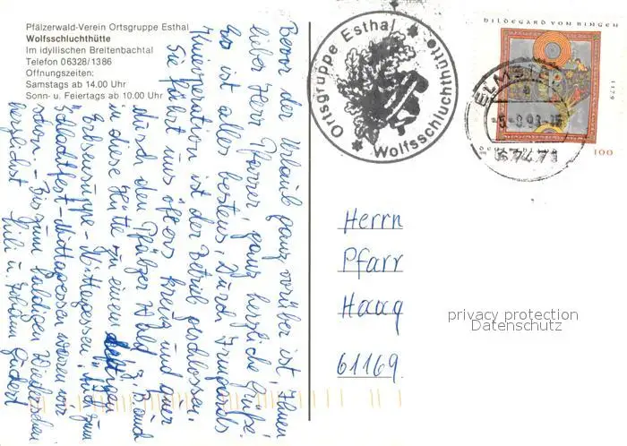 Esthal Wolfsschluchthuette im Breitenbachtal Esthal postalisch gelaufen 1993 Erhaltung siehe scans [LiesaD40] LiesID40