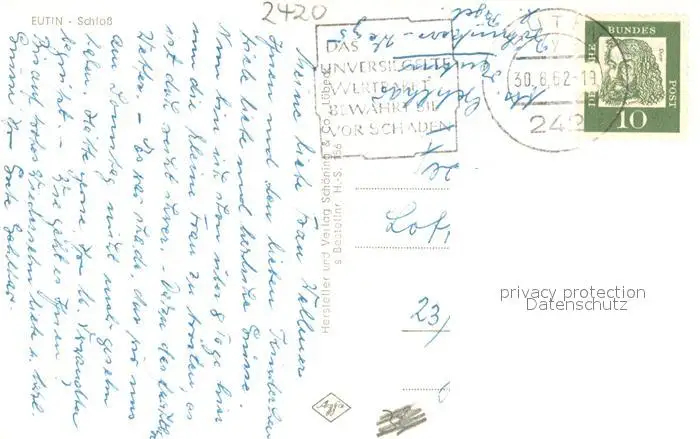 Eutin Schloss Eutin postalisch gelaufen 1962 Erhaltung siehe scans [WerneD78] WernPID7