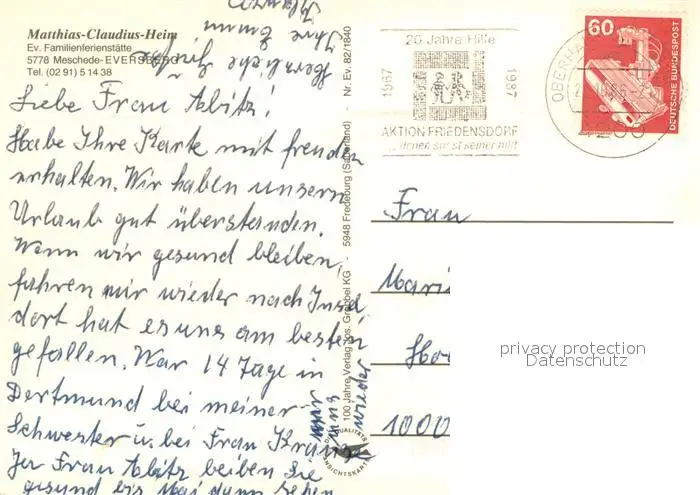 Eversberg Matthias Claudius Heim Eversberg postalisch gelaufen 1986 Erhaltung siehe scans [WerneD78] WernPID7