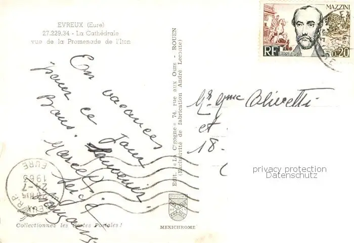 Evreux_27_Eure La Cathédrale vue de la Promenade de l Iton postalisch gelaufen 1963 Erhaltung siehe scans [FriedD77] Frierer