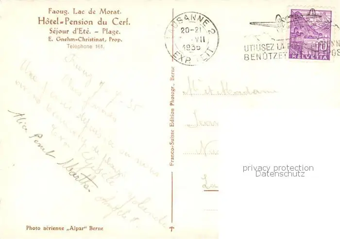 Faoug_VD Vue aerienne postalisch gelaufen 1935 Erhaltung siehe scans [WerneD78] WernPID7