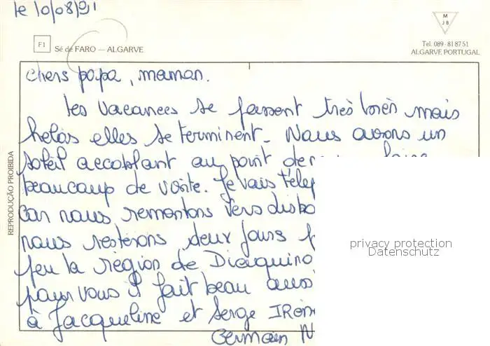 Faro_Portugal Kirche postalisch gelaufen 1991 Erhaltung siehe scans [WerneD78] WernPID7