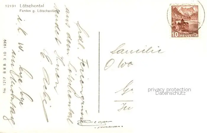 Ferden_VS im Loetschental mit Loetschenluecke postalisch gelaufen 1945 Erhaltung siehe scans [FriedD77] Frierer