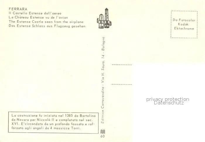 Ferrara Il Castello Estense dall'aereo Ferrara postalisch nicht gelaufen nach 1965 Erhaltung siehe scans [WerneD78] WernPID7