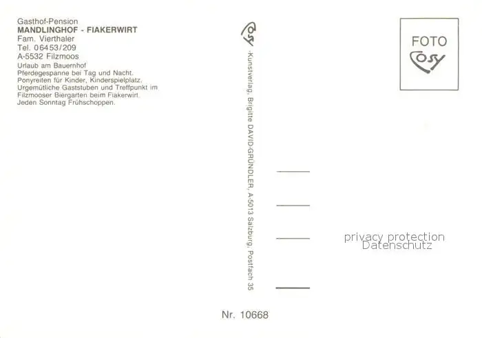 Filzmoos Fiakerwirt Mandlinghof Filzmoos postalisch nicht gelaufen nach 1965 Erhaltung siehe scans [WerneD78] WernPID7