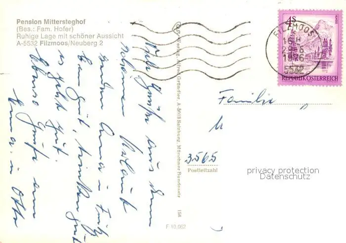 Filzmoos Pension Mittersteghof Filzmoos postalisch gelaufen 1976 Erhaltung siehe scans [NatalD47] NataID47