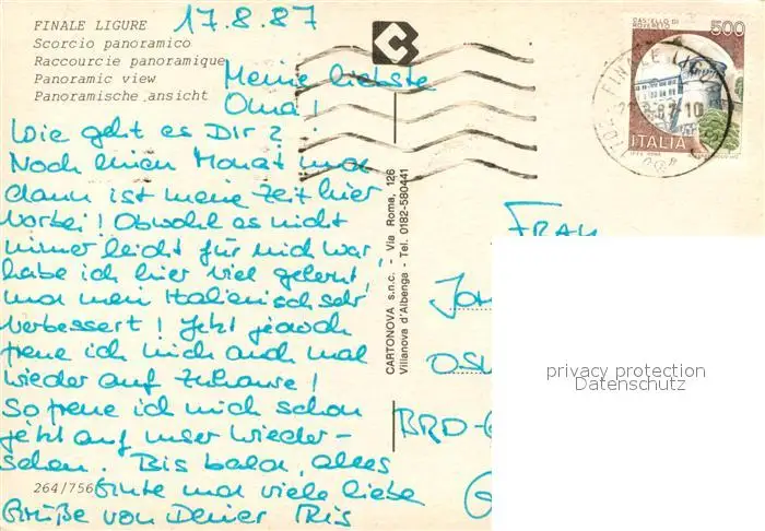 Finale_Ligure Scorcio panoramico Spiaggia Strand Finale_Ligure postalisch gelaufen 1987 Erhaltung siehe scans [FriedD77] Frierer