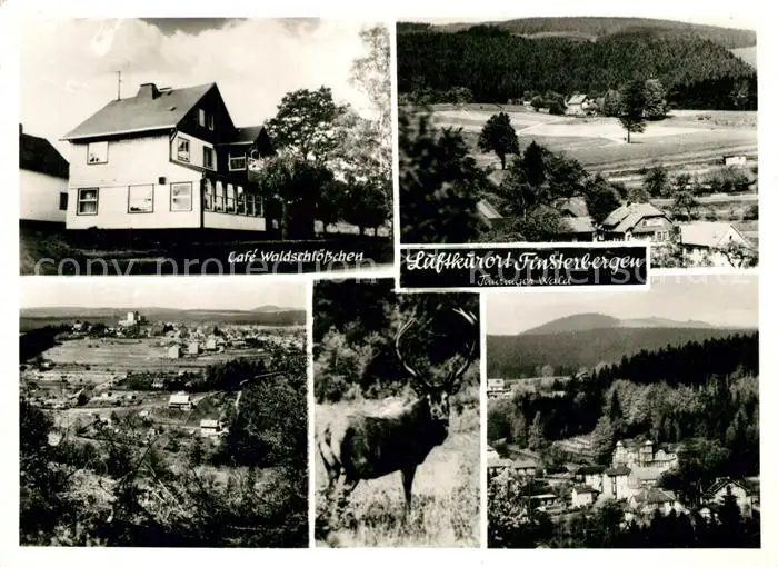 Finsterbergen Cafe Waldschloesschen Panorama Hirsch Finsterbergen postalisch nicht gelaufen 1921-1965 Erhaltung siehe scans [WerneD78] WernPID7