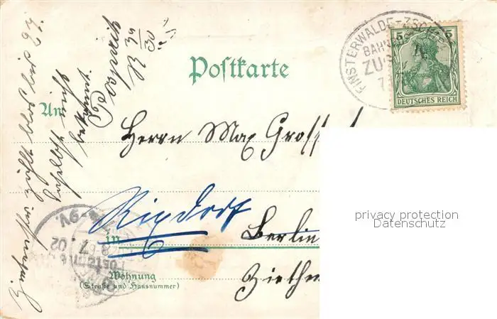 Finsterwalde Kategorie Alte Ansichtskarten Postkarten bx44540 Finsterwalde Berliner Strasse Finsterwalde postalisch gelaufen 1902 Bahnpost Erhaltung siehe scans [NatalD47]