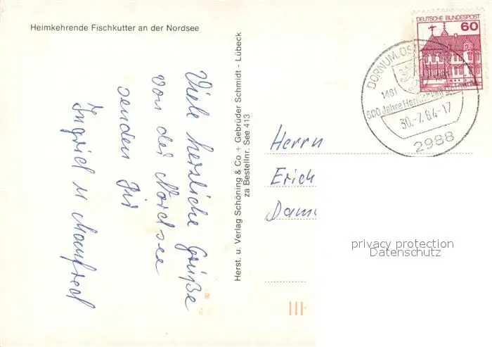 Fischerei Fischkutter Nordsee postalisch gelaufen 1984 Erhaltung siehe scans [PaolaD17] PaolPID1