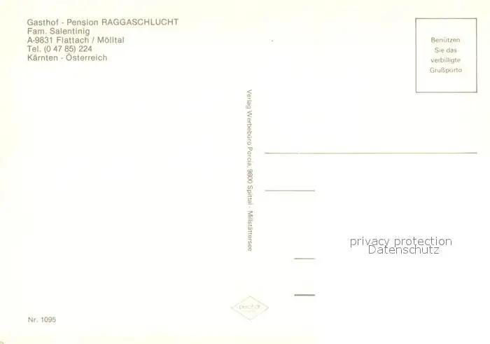 Flattach Gasthof Raggaschlucht Garten Gaststube Wasserfall Flattach postalisch nicht gelaufen nach 1965 Erhaltung siehe scans [WerneD78] WernPID7