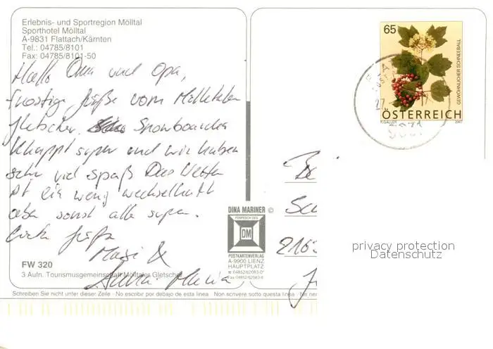 Flattach Sporthotel Molltal Skipisten Flattach postalisch gelaufen nach 1965 Erhaltung siehe scans [WerneD78] WernPID7