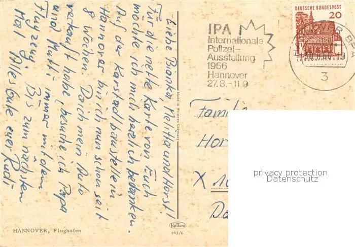 Flughafen_Airport_Aeroporto Hannover Flughafen_Airport postalisch gelaufen 1966 Erhaltung siehe scans [IrynaD87] Iryn PID
