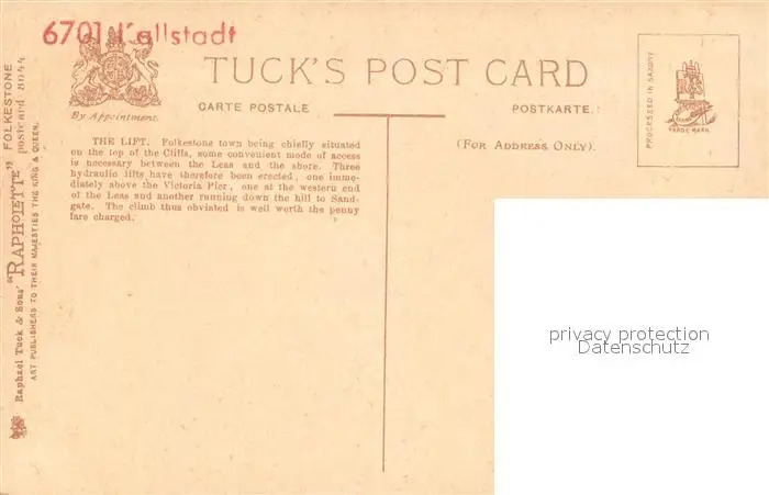 Folkestone The Lift Folkestone postalisch nicht gelaufen 1921-1965 Erhaltung siehe scans [WerneD78] WernPID7