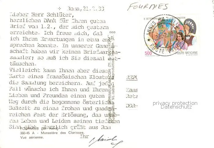 Fourmies_59_Nord Monastère des Clarisses vue aérienne postalisch gelaufen 1988 Fliegeraufnahme Erhaltung siehe scans [FriedD77] Fliegeraufnahme Frierer
