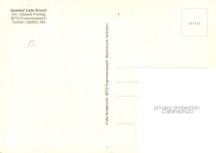 Frammersbach Gasthof Cafe Kirsch Frammersbach postalisch nicht gelaufen nach 1965 Erhaltung siehe scans [FriedD77] Frierer