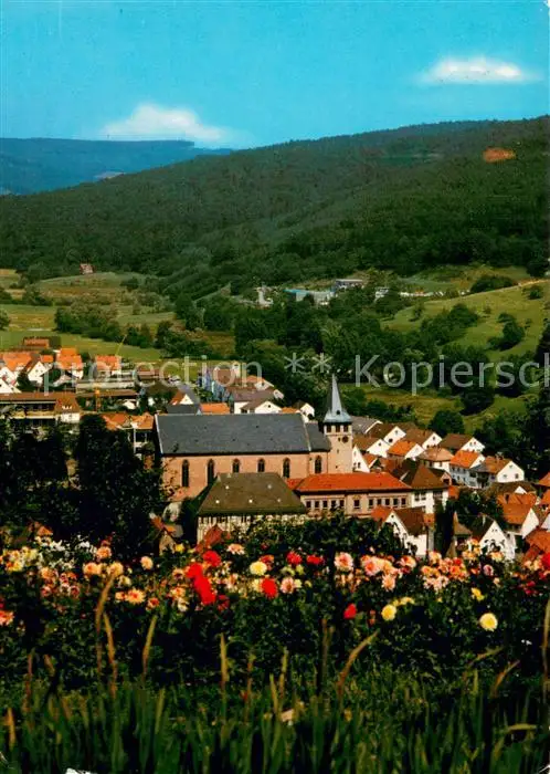 AK / Ansichtskarte Frammersbach Ortsansicht mit Kirche Landschaft Frammersbach
