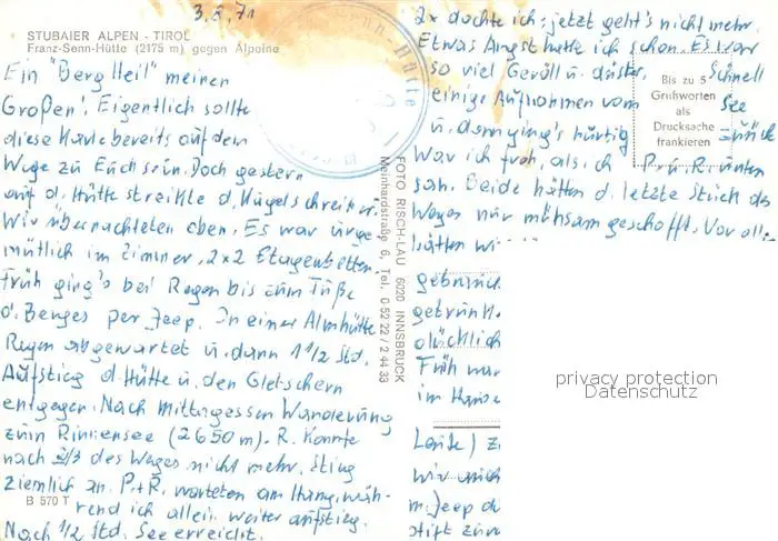 Franz_Senn_Huette Alpeine Franz_Senn_Huette postalisch nicht gelaufen 1971 Erhaltung siehe scans [NatalD47] NataID47