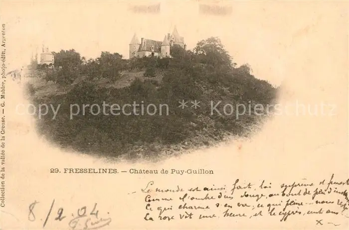 Fresselines Chateau de Puy Guillon Fresselines postalisch gelaufen 1904 Erhaltung siehe scans [WerneD78] WernPID7