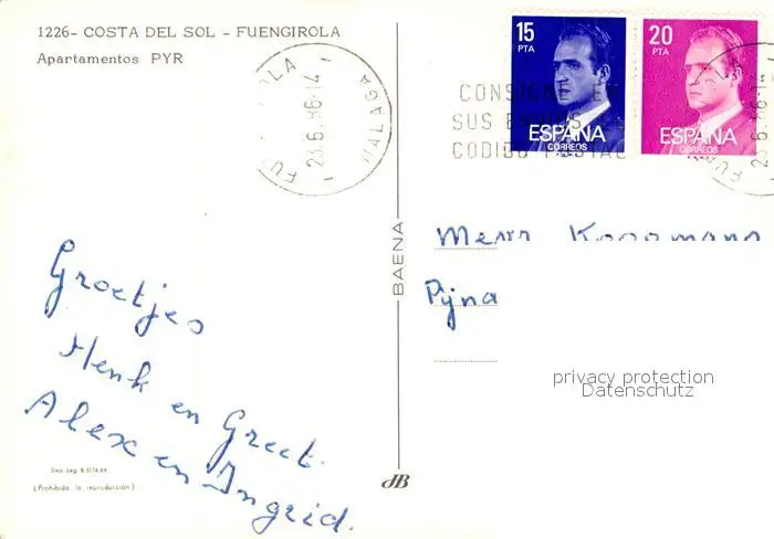 Fuengirola Apartamentos PYR Fuengirola postalisch gelaufen 1986 Erhaltung siehe scans [KathaD81] Kathoren
