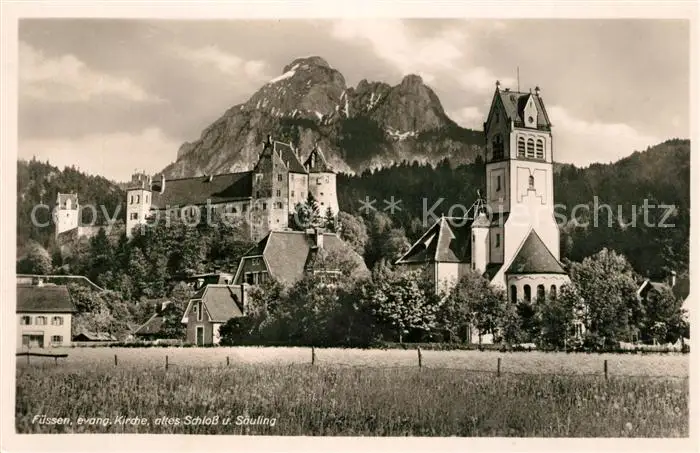 Fuessen_Allgaeu Ev Kirche Altes Schloss Saeuling Fuessen Allgaeu postalisch gelaufen 1941 Erhaltung siehe scans [WerneD78] WernPID7