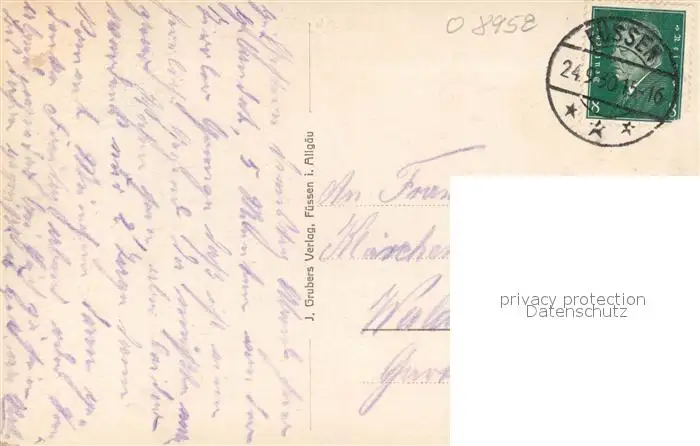 Fuessen_Allgaeu Panorama mit Schloss Fuessen Allgaeu postalisch gelaufen 1930 Erhaltung siehe scans [WerneD78] WernPID7