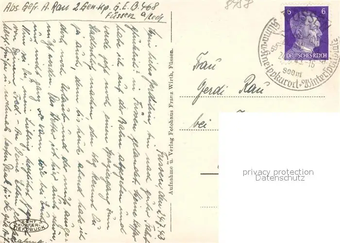 Fuessen_Allgaeu Reichenstrasse mit Schloss Fuessen Allgaeu postalisch gelaufen 1943 Erhaltung siehe scans [WerneD78] WernPID7