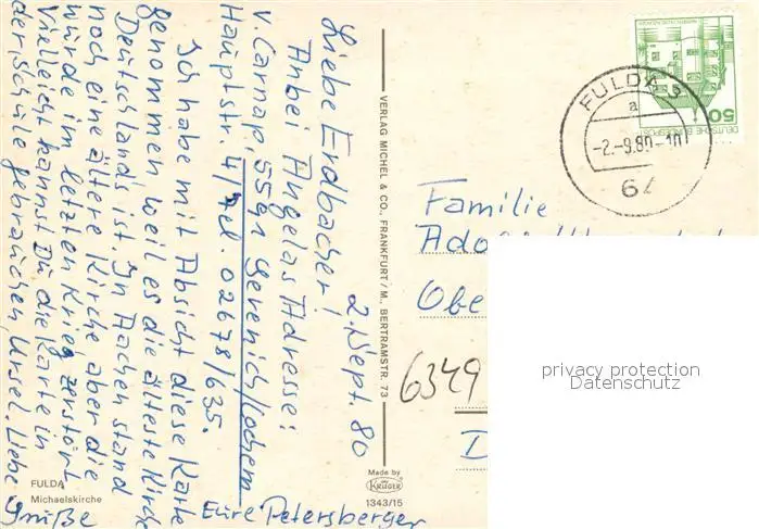 Fulda Michaelskirche Fulda postalisch gelaufen 1980 Erhaltung siehe scans [KathaD81] Kathoren