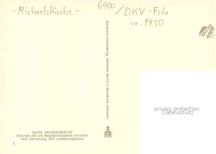 Fulda Michaelskirche Fulda postalisch nicht gelaufen 1950 Erhaltung siehe scans [WerneD78] WernPID7
