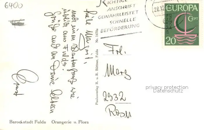 Fulda Orangerie und Flora Fulda postalisch gelaufen 1967 Erhaltung siehe scans [WerneD78] WernPID7