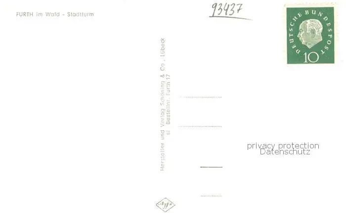 Furth_Wald Stadtturm Furth_Wald postalisch nicht gelaufen 1921-1965 Erhaltung siehe scans [FriedD77] Frierer