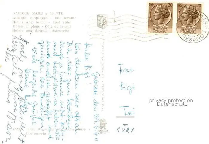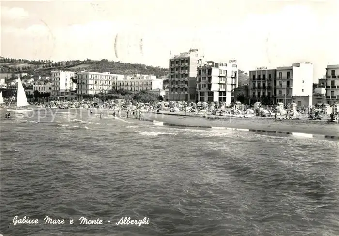 Gabicce_Mare e Monte Alberghi e spiaggia Gabicce Mare postalisch gelaufen 1960 Erhaltung siehe scans [FriedD77] Frierer