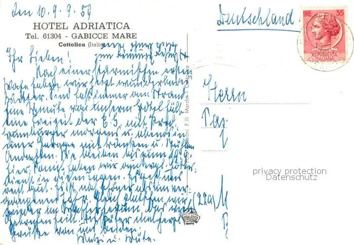 Gabicce_Mare_IT Hotel Adriatica postalisch gelaufen 1959 Erhaltung siehe scans [LiesaD40] LiesID40