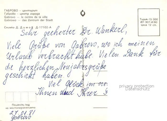 Gabrovo Zentrum der Stadt Gabrovo postalisch nicht gelaufen 1981 Erhaltung siehe scans [WerneD78] WernPID7