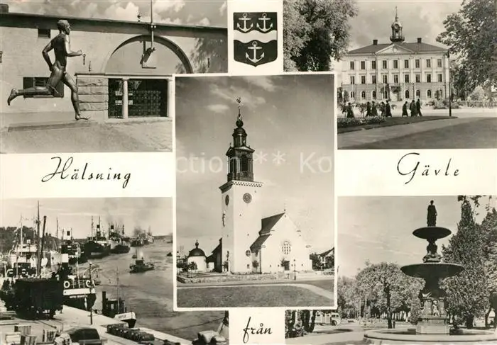 AK / Ansichtskarte Gaevle Hafen Skulptur Kirche Gaevle