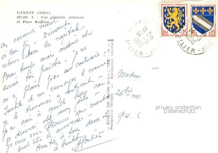 Gannat Place Rantion vue aérienne Gannat postalisch gelaufen 1966 Erhaltung siehe scans [FriedD77] Frierer